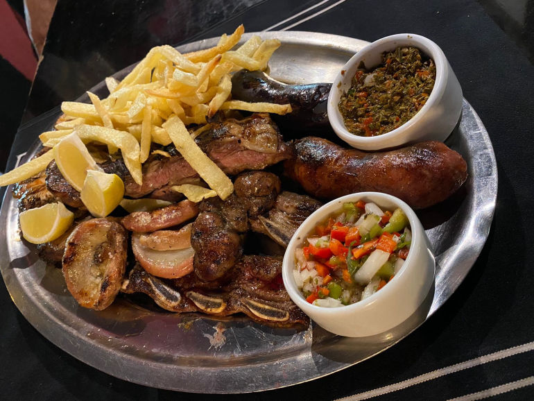 (tomates cherry, aceituna negras, albahaca y láminas de parmeso)